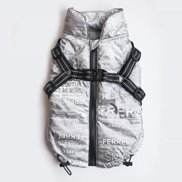 Dog coat with harness built in, cross design reduces stress, strengthened seams and sturdy D-ring can withstand strong pulling force.Safety reflective strips on the harness, provide extra visibility during night.The zipper of dog coats is on the back, convenient to wear and take off.